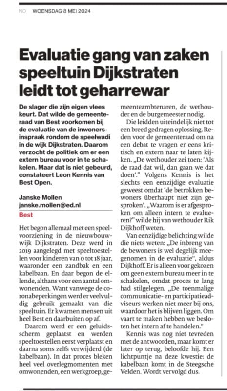 Zie onderstaand krantenartikel in ED van 8-5-2024